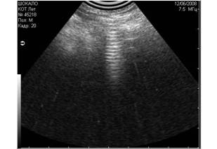 Чаще всего этот артефакт нам приходится наблюдать при прохождении ультразвукового луча через диафрагму. При этом можно сделать ошибочное заключение о нарушении целостности диафрагмы.