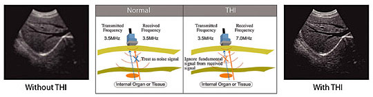 - Уменьшает поперечный эффект на границах тканей, что делает органы более различимыми.